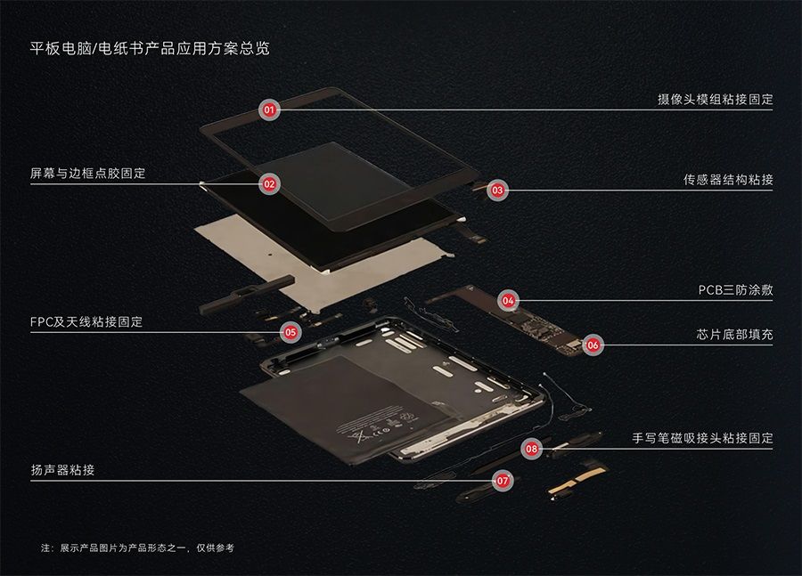目前,超薄、觸屏、智能系統(tǒng)的MID產(chǎn)品平板&筆記本電腦越來越受到消費(fèi)者的青睞。隨著技術(shù)進(jìn)步,平板和筆記本電腦對材料、工藝、外觀、性能等提出了更高的要求。在設(shè)計(jì)與制造的過程中,傳統(tǒng)的螺紋和卡扣已很難滿足其超薄超輕、立體美觀的特點(diǎn)。為了實(shí)現(xiàn)這些特點(diǎn),組裝制程中越來越多采用膠粘劑來粘接基材,貼合組件。